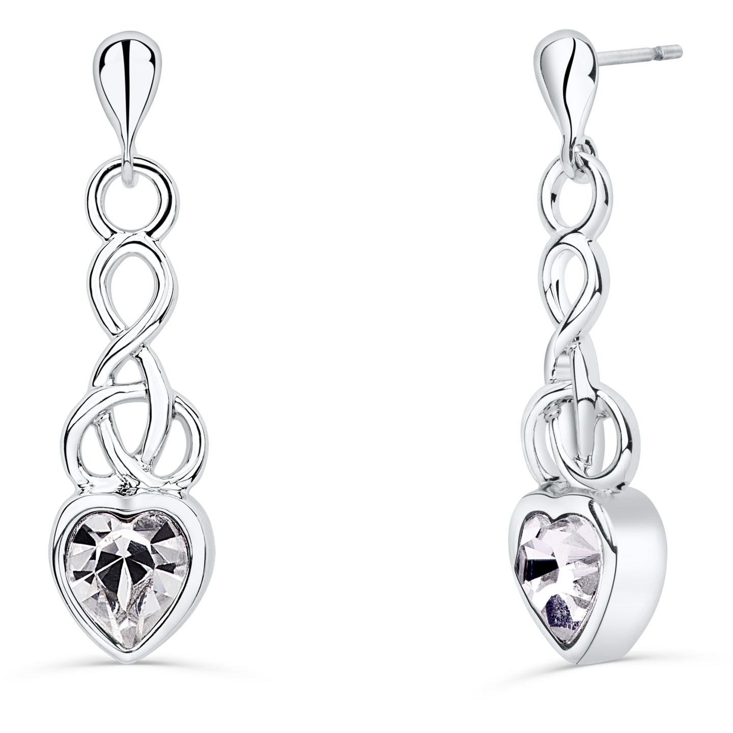 Elegant Celtic Knotwork Drop Earrings inset with a Clear Crystal Heart.