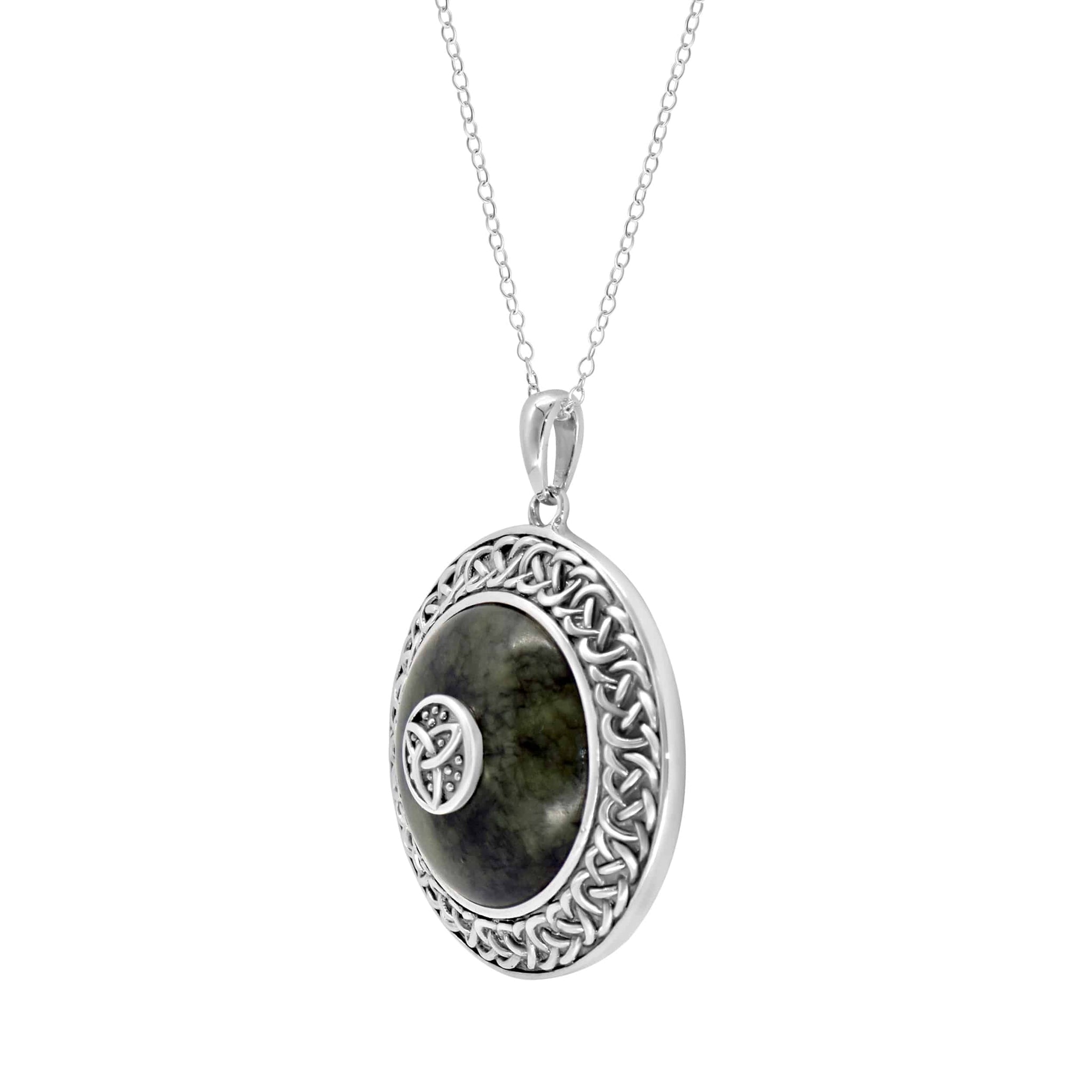 Presented on an 18″ sterling silver chain. Our Sterling Silver is hallmarked in the Dublin Assay office located in Dublin Castle.  With a weight of 13.1 grams the pendant measures 3 x 3 cm.