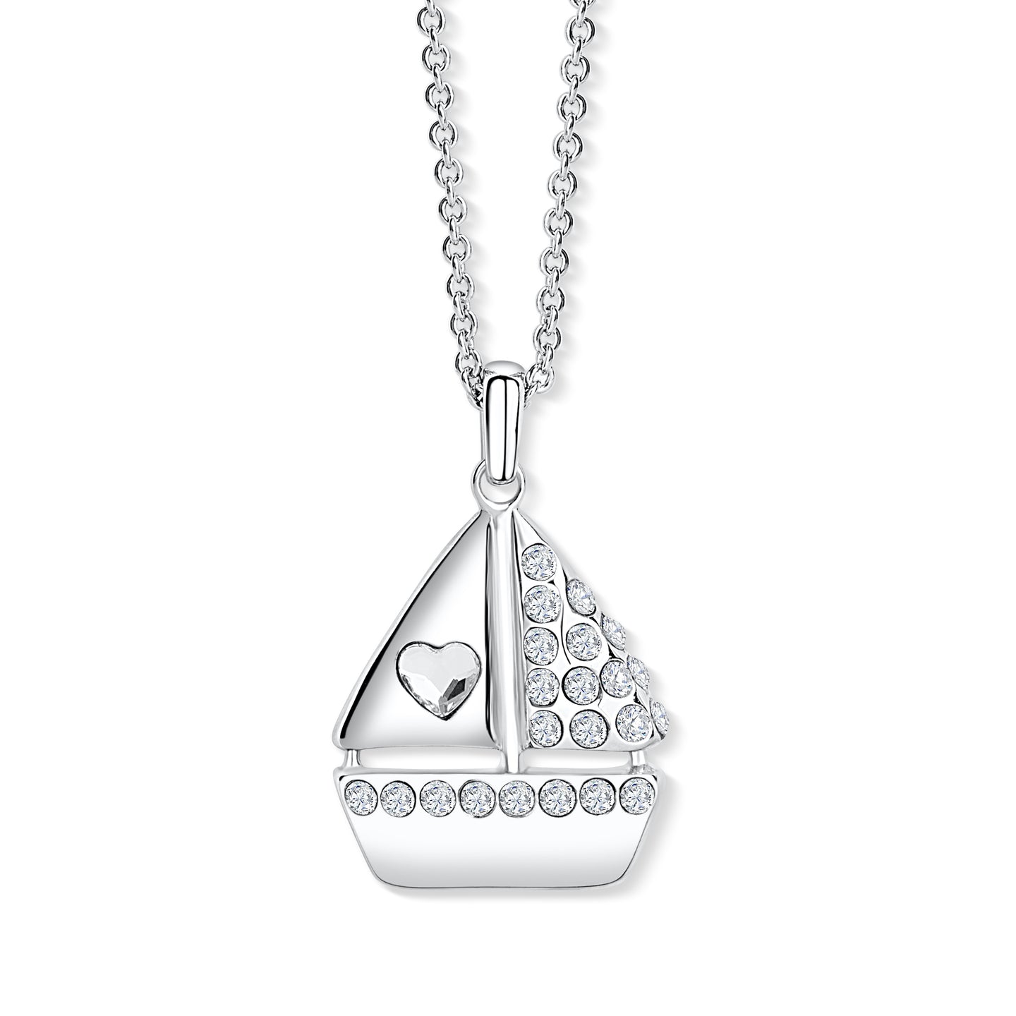 Our Galway Hooker pendant features Crystal detail including a small crystal heart on the mainsail
