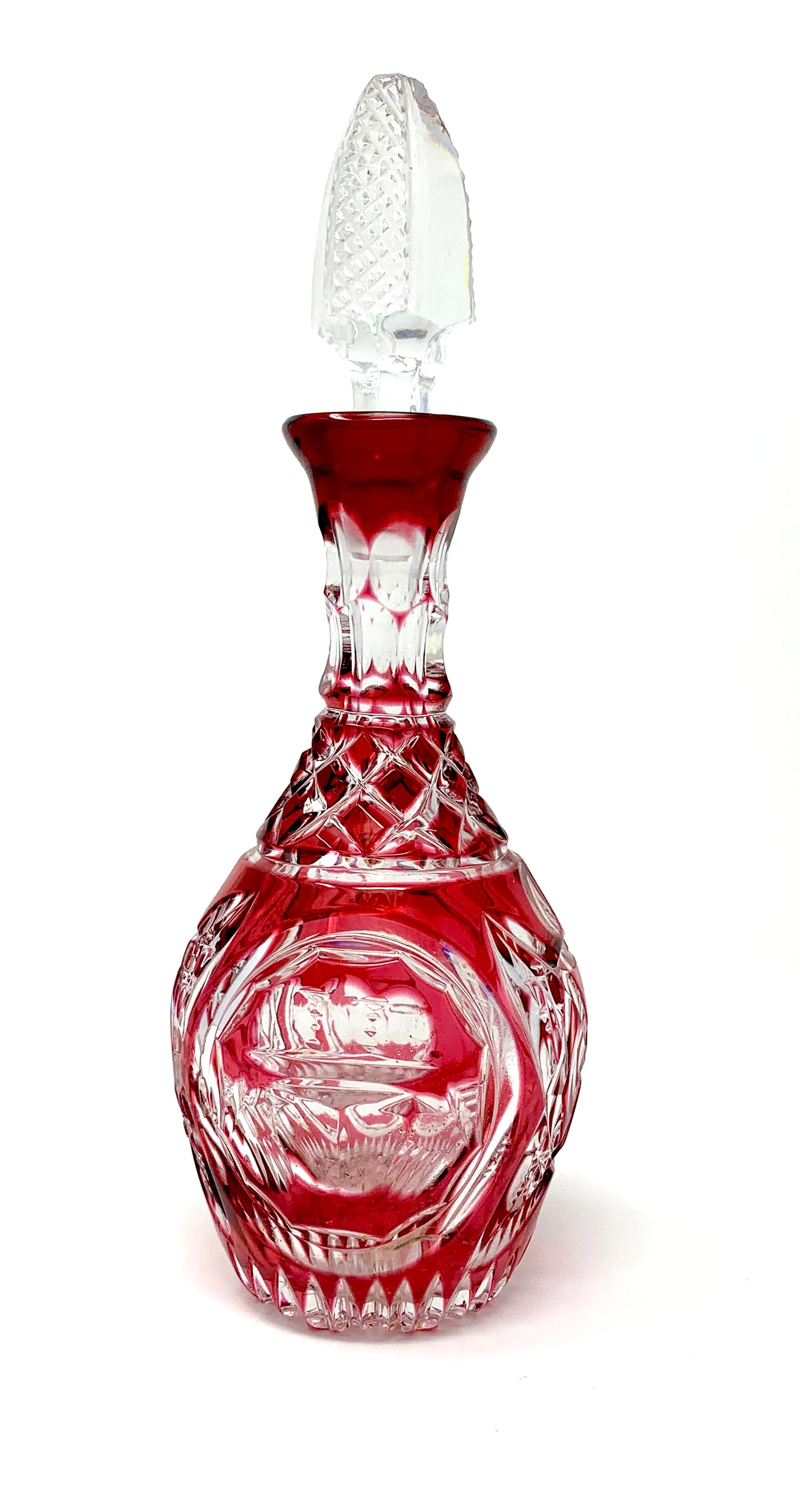 Limited Edition Red Crystal Wine Decanter with Claddagh Ring design and our signature Irish Rose design on the base.